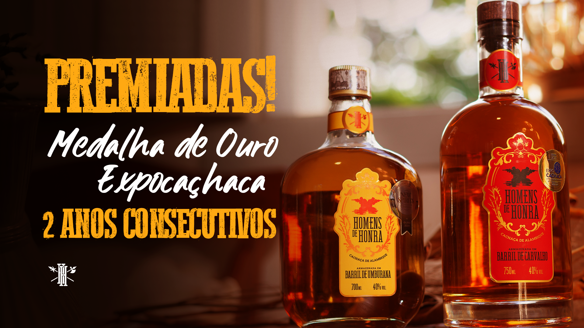 Nossa cachaça Homens de Honra ouro, armazenada 4 anos em barris de carvalho europeu, acabou de receber a Medalha de Ouro no 12° Concurso Anual e Nacional da Cachaça realizado em Minas Gerais.